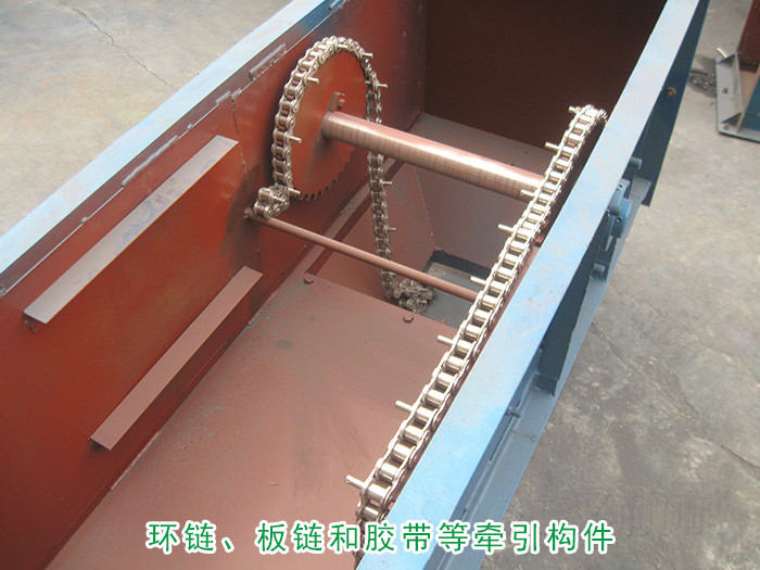 環鏈的結構和制造比較簡單,與料斗的連接也很牢固,輸送磨琢性大的物料時,鏈條的磨損較小,但其自重較大。板鏈結構比較牢固,自重較輕,適用于提升量大的提升機,但鉸接接頭易被磨損,膠帶的結構比較簡單,但不適宜輸送磨琢性大的物料,普通膠帶物料溫度不超過60°C,夾鋼繩膠帶允許物料溫度達80°C,耐熱膠帶允許物料溫度達120°C,環鏈、板鏈輸送物料的溫度可達250°C 。