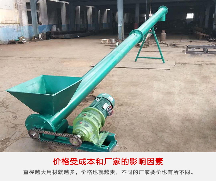 ①成本——例如160型就是指輸送機直徑為160mm,而1000型則是指輸送機直徑為1000mm,直徑越大用材就越多,價格也就越貴。還有客戶所需的輸送距離也決定著用材的多少,距離越長價格越高。大傾角螺旋輸送機的材質也影響價格,不銹鋼材質會比碳鋼的貴。