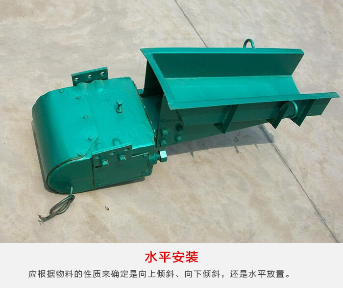 電磁振動(dòng)給料機(jī)槽體可以水平安裝,也可以傾斜安裝,其給料能力與下傾角度成正比,但下傾角過(guò)大容易引起物料自流,難以保證給料精度。因此應(yīng)根據(jù)物料的性質(zhì)來(lái)確定是向上傾斜、向下傾斜,還是水平放置。