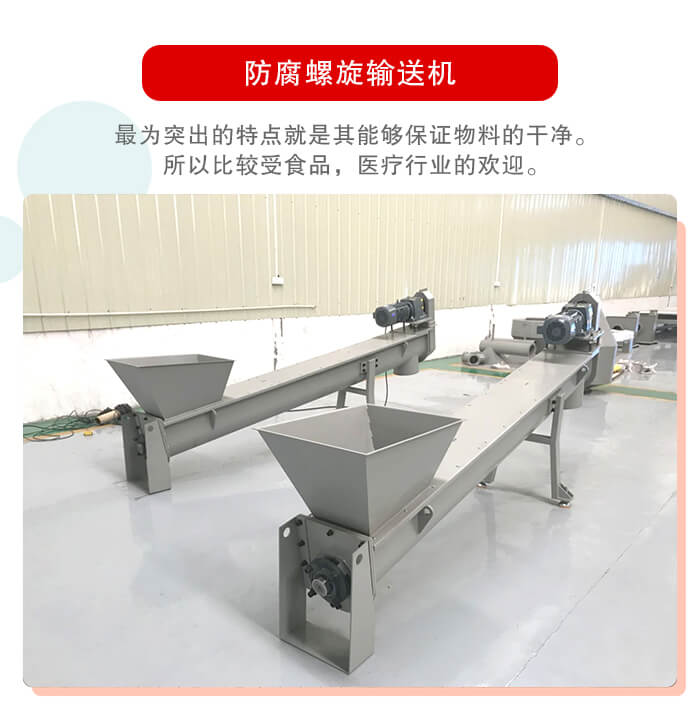 防腐螺旋輸送機(jī)其主要的輸送物料,就是一些:面粉,淀粉等的粉狀物料。如果先要輸送一些重量相對面粉較重的物料,其就要選擇一些相對較貴的防腐螺旋輸送機(jī)了。因為螺旋輸送機(jī)的輸送還是用來輸送物料的。物料有了一定的差距其螺旋輸送機(jī)頁是要重新選擇的。
