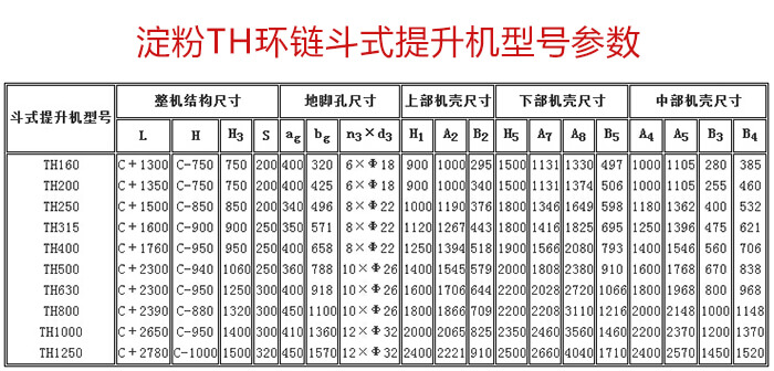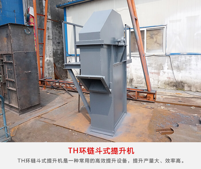 TH環(huán)鏈斗式提升機是一種常用的高效提升設備,提升產量大、效率高,主要由運行部件、牽引件(輸送鏈)、驅動裝置、上部裝置、中部機殼、下部裝置、加料口(入料口)和卸料口(出料口)組成。可適用與淀粉的高速提升輸送。