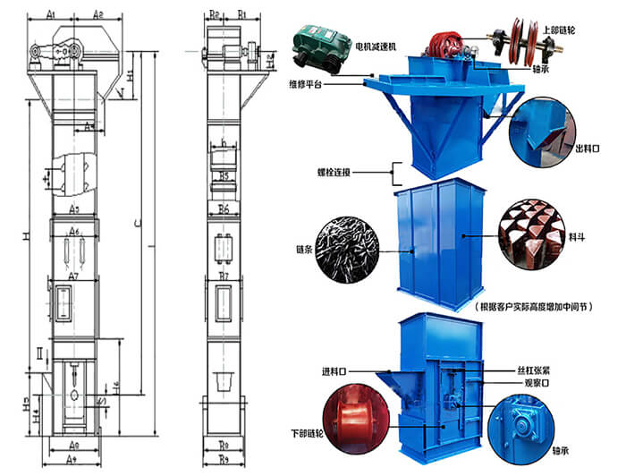 粉TH環(huán)鏈斗式提升機型號有TH160、TH250 、 TH315、TH400 、TH500等。同時大漢機械支持產品特殊定做,根據(jù)您的要求為您定制出合適的設備!