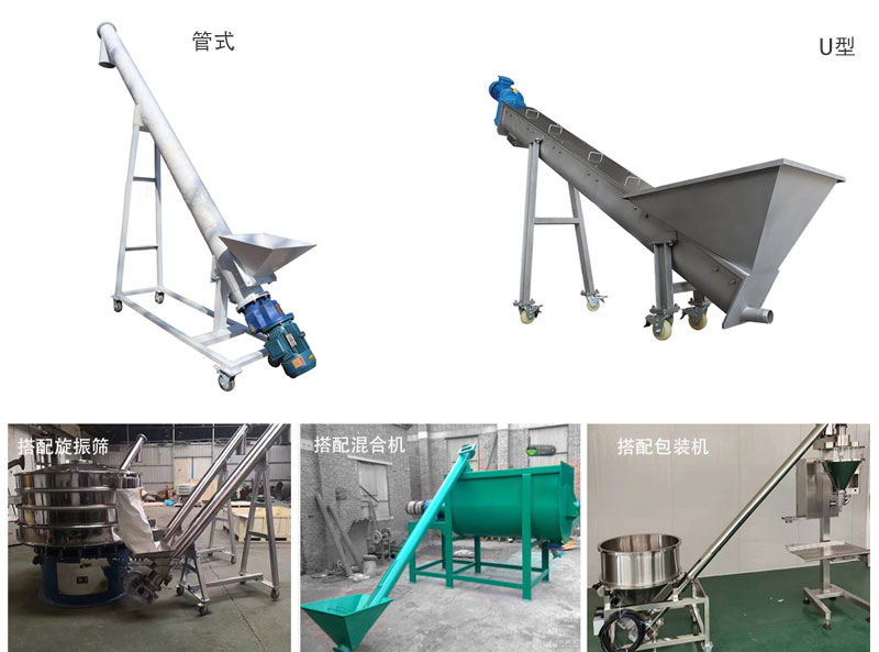移動式螺旋輸送機根據輸送物料和現場情況可分為不同的材質及輸送角度: