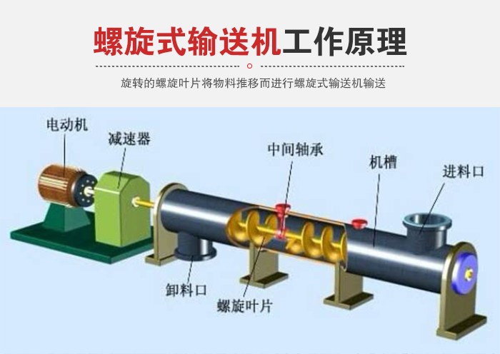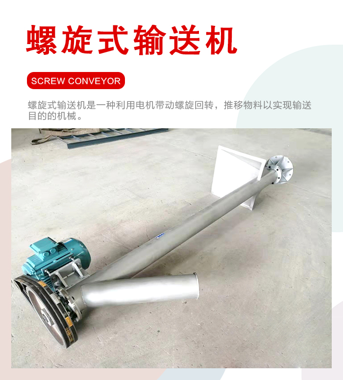 簡介:螺旋式輸送機是一種利用電機帶動螺旋回轉(zhuǎn),推移物料以實現(xiàn)輸送目的的機械。