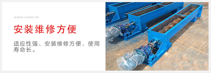 小型旋輸送機主要有傳動裝置、進料口、螺旋軸、輸送管、出料口等部件組成。水平螺旋輸送機是利用旋轉的螺旋將被輸送的物料沿固定的機殼內推移而進行輸送工作,頭部及尾部軸承移至殼體外,吊軸承采用滑動軸承設有防塵密封裝置,軸瓦一般采用粉末冶金,輸送水泥采用毛氈軸瓦,吊軸和螺旋軸采用滑塊連接。