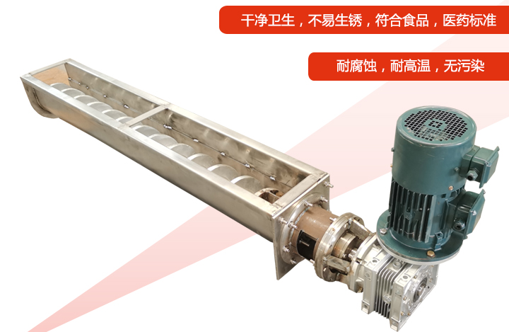 不銹鋼U型螺旋輸送機由于采用了304或316不銹鋼材質,耐磨、耐腐蝕效果非常好,耐高溫:可達200℃可以輸送200℃粉末、顆粒及小塊狀物料,不易生銹及不易污染物料:04或316不銹鋼材質拋光處理,干凈衛(wèi)生,不會生銹,并且設備密封性好,可以避免對輸送物料及環(huán)境造成污染,所以一般在食品、醫(yī)藥等衛(wèi)生要求較為嚴格的行業(yè)中應用較為廣泛,此外,還可用戶普通化工行業(yè),可抵抗弱酸、弱堿性物料的侵蝕。